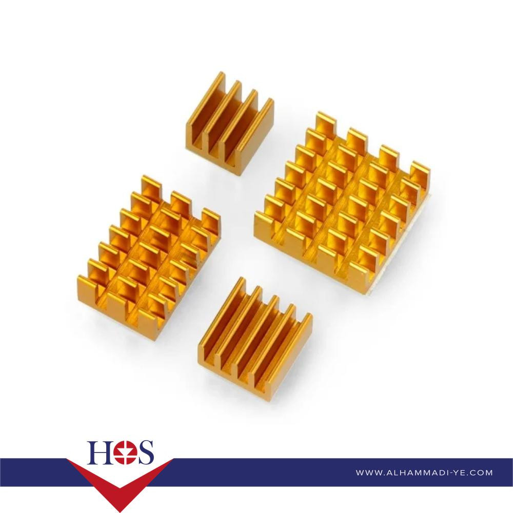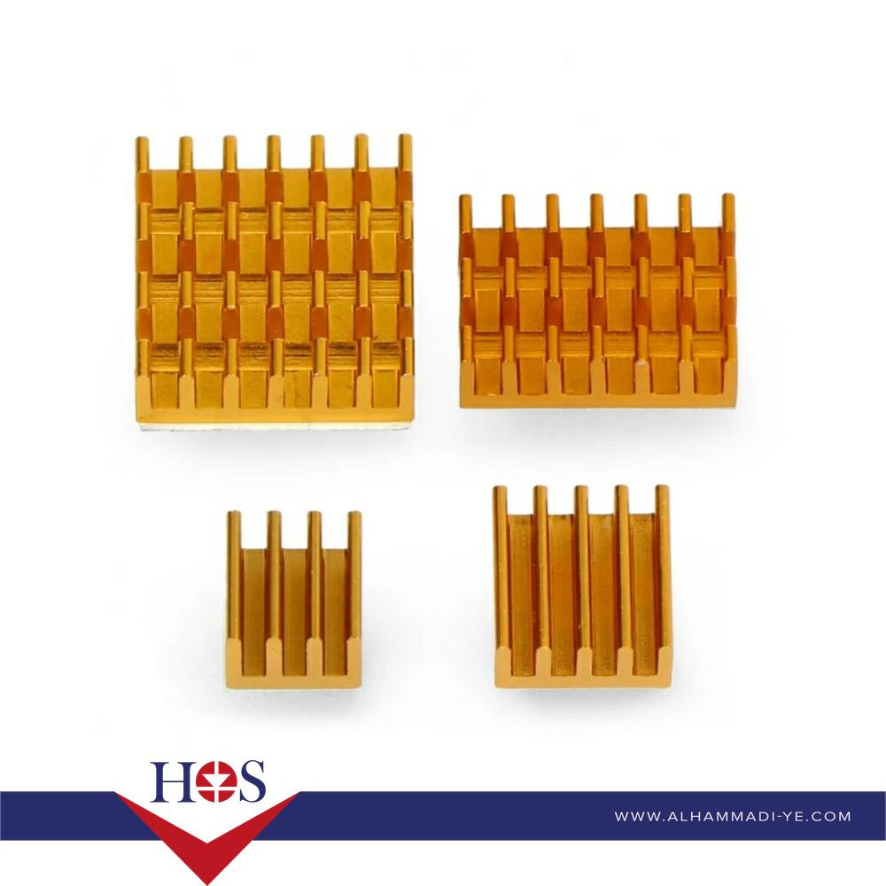 Gold 3 in 1 Heat Sink Set Aluminum for Raspberry Pi 4B-14*14*6mm-15*10*5mm - 8.8*8.8*5mm مبرد معالج راسبيري باي